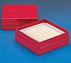 Engineered for use with liquid nitrogen, these convenient storage units can also be used in a freezer or at room temperature. These freezer boxes are made of chipboard and spray-coated with polyethylene. Accommodates 81 of either 1 or 2 ml Cryule® vials.